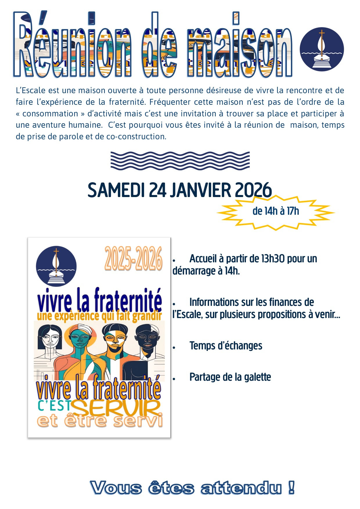 Bienvenue à L'Escale Maison Saint-Jean-Baptiste, lieu créé par une communauté chrétienne qui œuvre à renforcer les liens sociaux. Cet espace animé dans un esprit bienveillant est ouvert à tous !